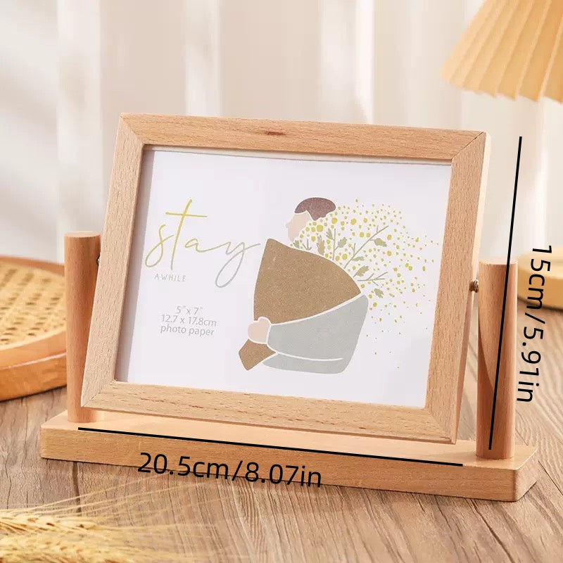 [DFC] 7-inch wooden photo frame stand, hollow picture frame, desktop photo display item, diy photo display frame, Children's birthday photo frame, newborn photo frame,weight 350g